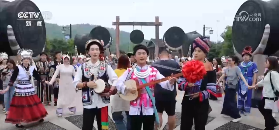 融合在地八个世居民族文化的夜间巡游,让游客沉浸式体验“万人打跳夜”的热闹氛围。非遗表演、互动环节和地道美食,让游客深度参与,感受不同民族文化的魅力。