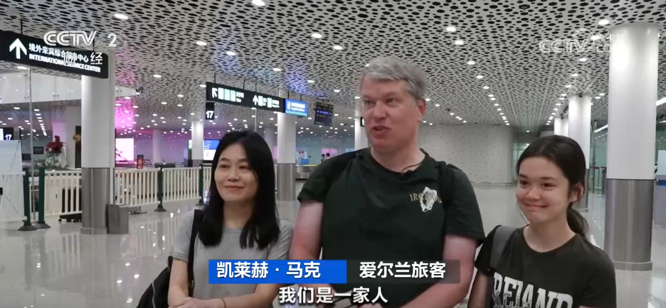 来自爱尔兰的凯莱赫·马克一家,第一次体验了中国入境的便捷。“我们是一家人,刚从泰国曼谷飞来。中国的免签政策对我的妻子和女儿非常方便,我们非常开心可以来深圳,这是一座国际化的城市,我们已经迫不及待地想住在这里了。”他兴奋地说。