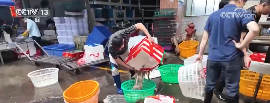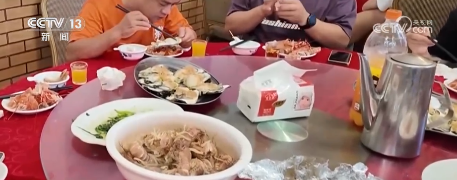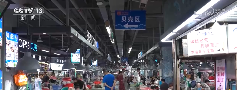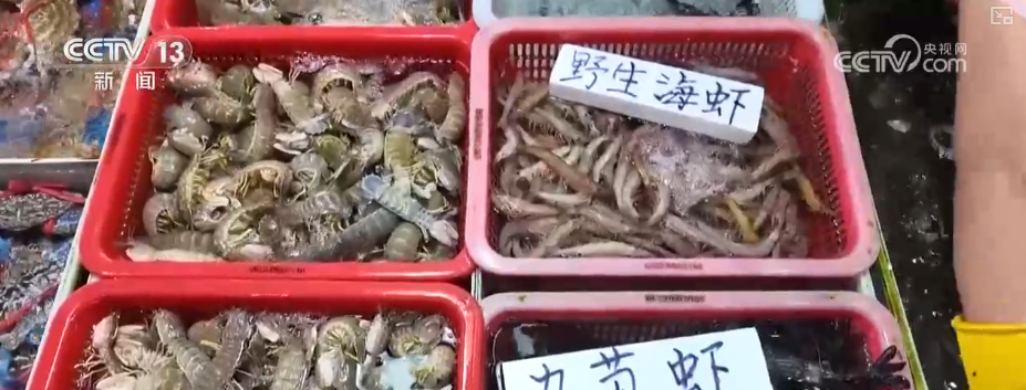 随着大批肥美的鱼、虾、蟹新鲜上市,当地常见海鲜价格降幅20%—40%,新鲜的各类海产品不仅丰富了市民餐桌,也带旺了市场人气。