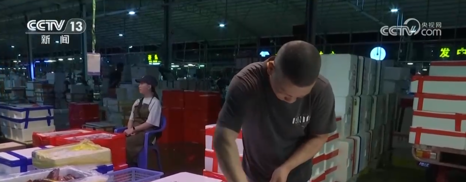 现在是凌晨1时,浩东水产批发市场内现在非常热闹,一辆辆货车正陆续将冰鲜送到这里。据了解,2025年有非常多的港澳商户在这里进行水产批发。