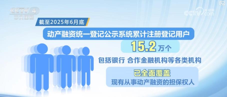 截至2025年6月底,动产融资统一登记公示系统累计注册登记用户15.2万个,包括银行、合作金融机构等各类机构,已全面覆盖现有从事动产融资的担保权人;服务的担保人数量近1800万个,以中小微企业(含个人和个体工商户)为主。