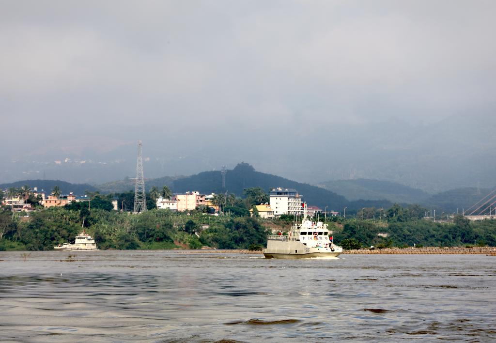 8月19日,中方执法艇从云南西双版纳景哈警务码头起航。(云南省公安厅水上巡逻总队供图)