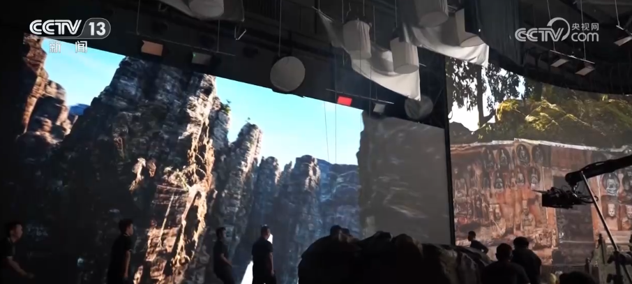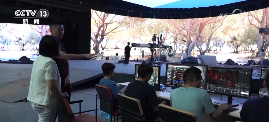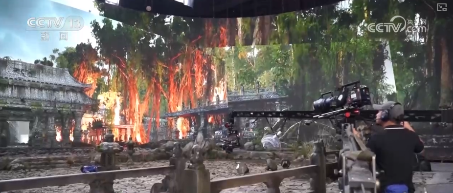在重庆永川科技片场,亚洲最大的虚拟拍摄系统已经投入使用。在这里,传统的影视创作模式正在被改变。这个LED背景屏能随着镜头的移动而变化,并实时渲染输出高品质画面,这样的虚拟制作涵盖XR、VP弧形屏、动作捕捉等先进系统,为剧组大幅节约了置景成本和等待时间。