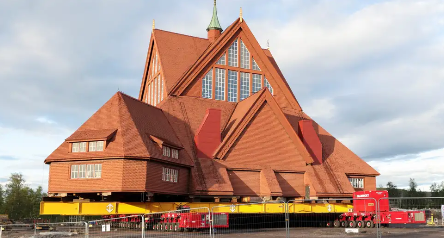 【环球时报综合报道】瑞典北部北博滕省小镇基律纳19日上演了一场百年教堂“搬家记”,当地著名的历史古迹、号称是“全瑞典最大木质结构建筑”之一的基律纳大教堂从镇中心“平移”到几公里外的新址。