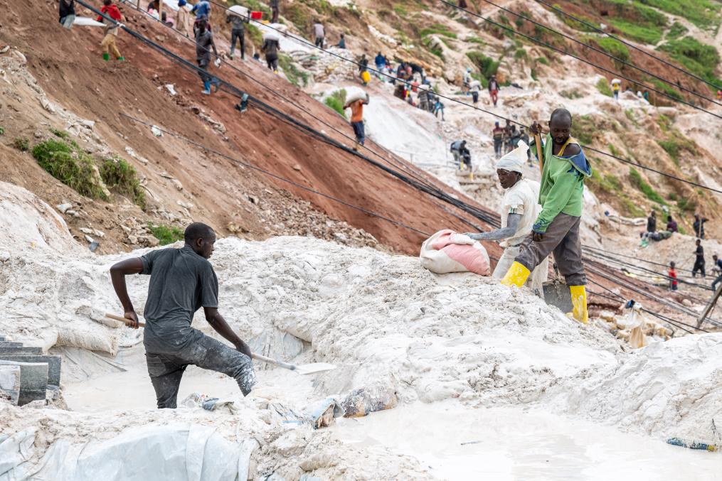 5月7日,矿工在刚果(金)东部北基伍省鲁巴亚的钶钽矿区劳作。新华社记者郑扬子摄