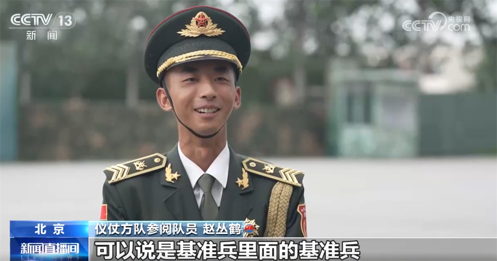 仪仗方队参阅队员赵丛鹤称:“可以说是基准兵里面的基准兵,当时很多人都不看好我,因为在外人看来这个基准兵身形要壮硕一点,但我偏瘦。身形壮硕一点更能稳住整个方队的节奏,但是我就不信,别人说稳不住节奏,我就使劲、再使劲,我使的劲比别人多很多,我让别人都能听见我的步音。”