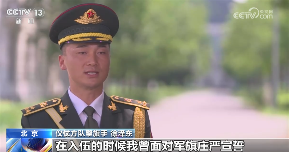 仪仗方队擎旗手徐泽东称:“在入伍的时候我曾面对军旗庄严宣誓,现在我有机会用行动践行当初的誓言,在这次任务中我一定接过革命先烈手中的军旗,让军旗在我手中高高飘扬。”