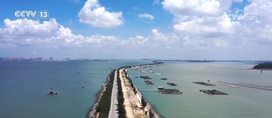 人们对中华白海豚的保护还不止如此,在三娘湾白海豚保护区与钦州工业园区之间,一条长达13公里的公路向海上延伸。公路一侧是生态保护,一侧是工业发展,这条连接经济与自然的“纽带”形成了著名的“广西最美海上公路”。