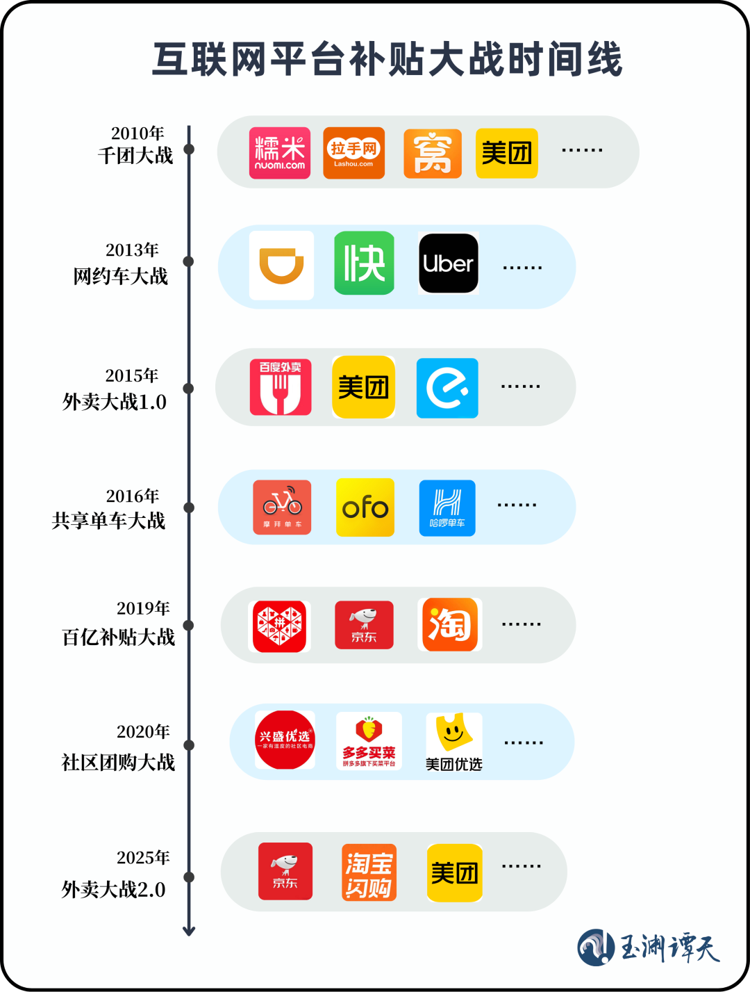 从这张图上就能看到,每隔一段时间,互联网平台就会在一些领域发起新的“大战”。