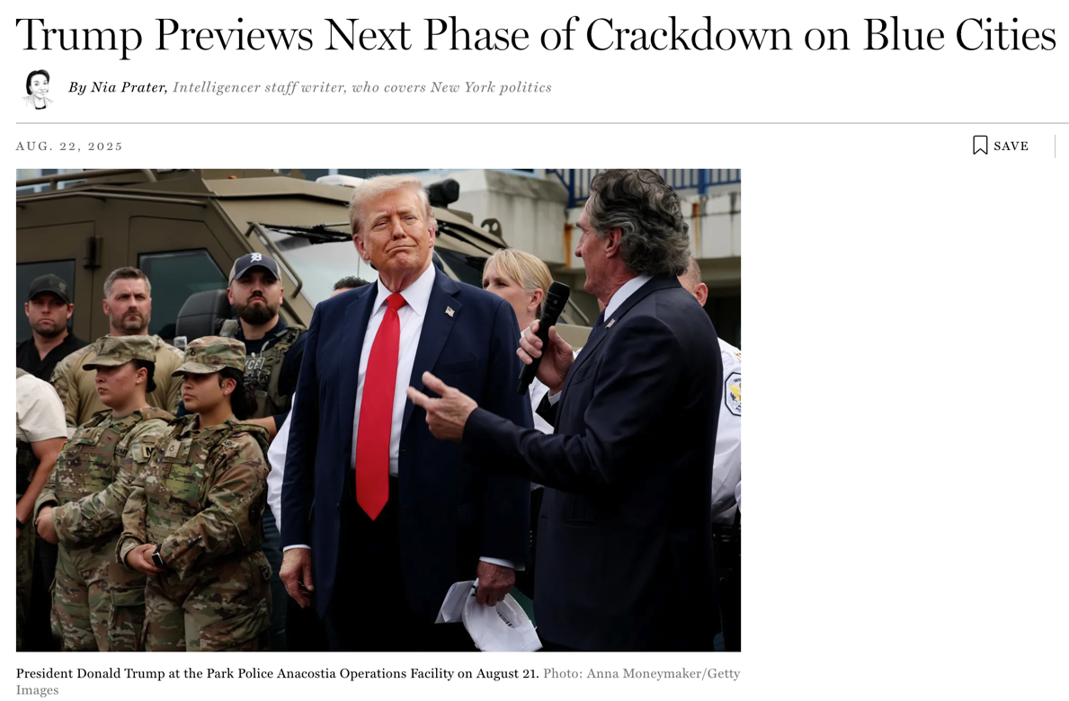 同时,特朗普点名华盛顿、芝加哥、纽约这类由民主党主政的大城市,意在放大“民主党治理失败”的印象。芝加哥常被贴上“枪支暴力与治安崩坏”的标签,纽约既是特朗普的故乡,也是民主党与主流媒体的象征性舞台。这些选择既有象征意义,也能放大政治对比,强化“只有我能恢复秩序”的选战话语。