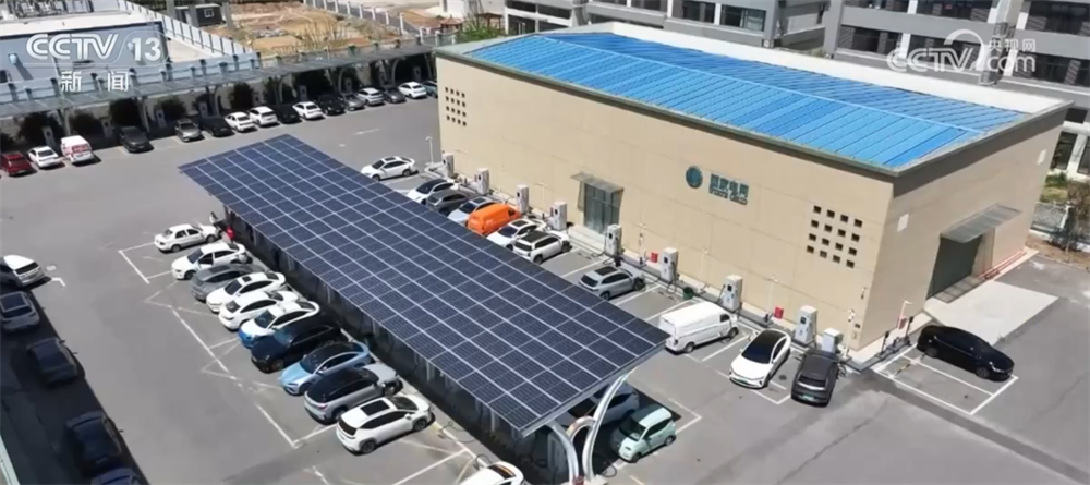 记者注意到,在这个超级快充站的顶棚上、高速公路边坡,包括服务区的屋顶上都铺满了光伏板。工作人员介绍,这些光伏每年可以发出115万度的绿电,除了可以供应这个超级充电站的用能需求,还能满足整个服务区的日常用电需求。