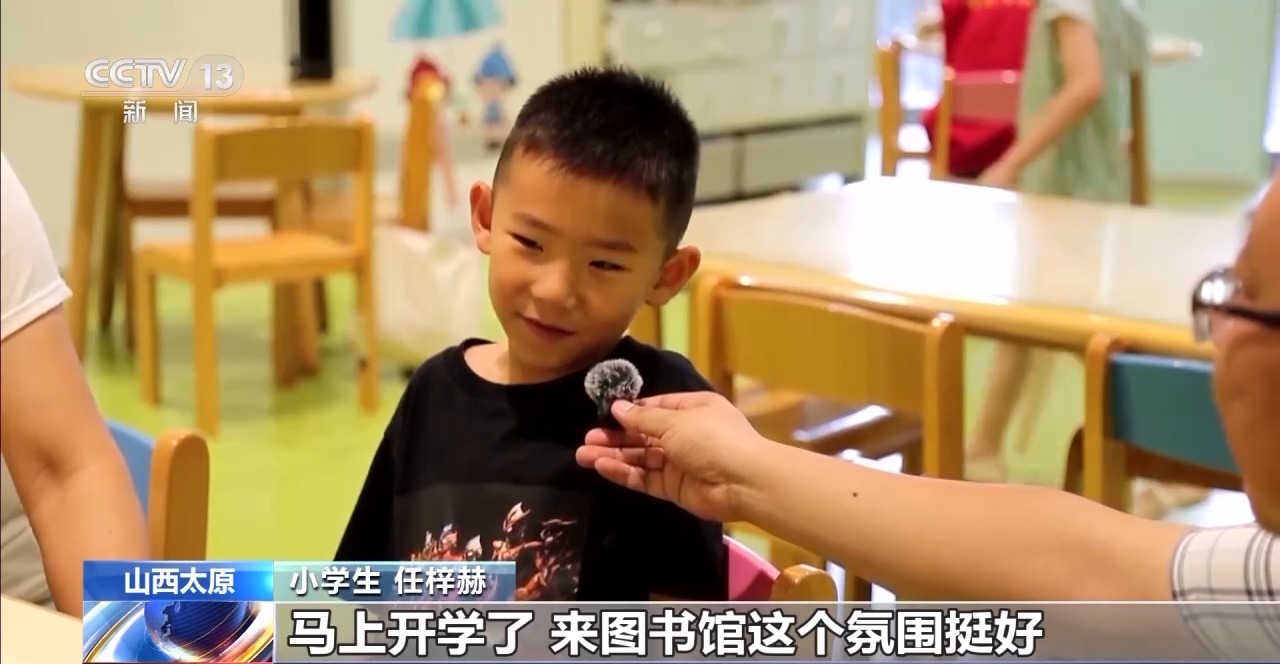 小学生 任梓赫:我开学一年级,今天我跟妈妈一起来图书馆。马上开学了,来图书馆这个氛围挺好。