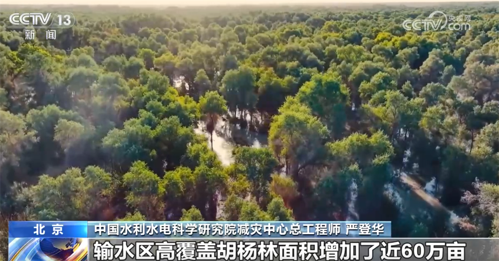 中国水利水电科学研究院减灾中心总工程师严登华称:“原本退化的胡杨林日益恢复生机,输水区高覆盖胡杨林面积增加了近60万亩,增加的比例超过了40%,低覆盖度胡杨正向高、中覆盖度胡杨转变。”