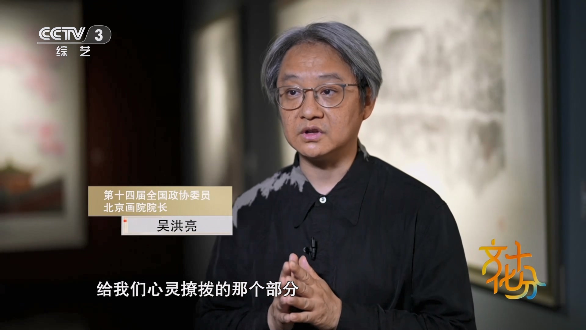 第十四届全国政协委员、北京画院院长 吴洪亮:从(王明明)的作品中,我们能感受到中国传统中那些深邃的、给我们心灵撩拨的部分,而王院长用一支笔在追这个传统深处的一些内涵的东西,是在传统中进行全新的创造,这个也是今天画家特别要追寻的。
