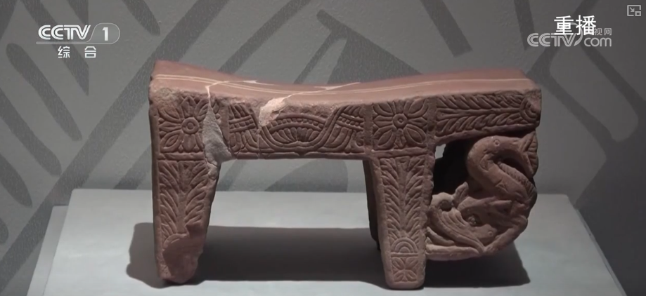 时光流动、空间迁移。沿着古代丝绸之路,来到公元前2世纪至公元2世纪的南亚。这件巴基斯坦伊斯兰堡博物馆馆藏的红砂岩磨盘也出现了一条龙。龙首、鱼身的造型,体现出中华文明和古印度与南亚文明在艺术上的相互影响。