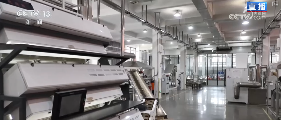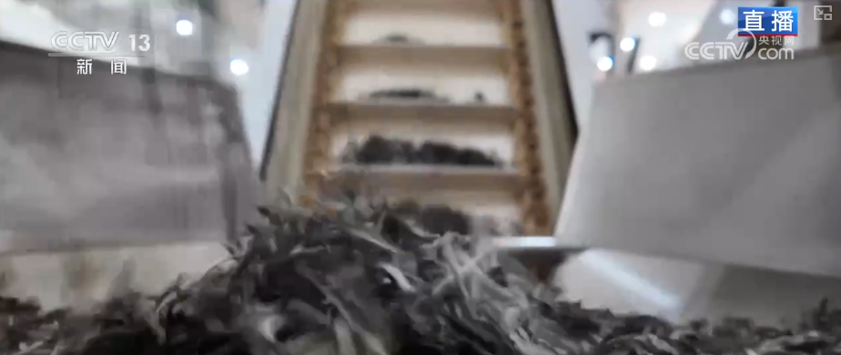 色选只是第一步,接下来这台设备则是“形选”。它会通过AI来识别茶叶的长短、胖瘦等外观指标,把茶叶梗、砂石等杂物精准剔除。接着,就来到了“高压静电除杂”环节,这台设备会去除吸附在茶叶上的那些细微的毛发,或者动物羽毛等杂质。最后要进行“风选”,这台设备会通过风力,来剔除茶叶中轻飘的碎末。