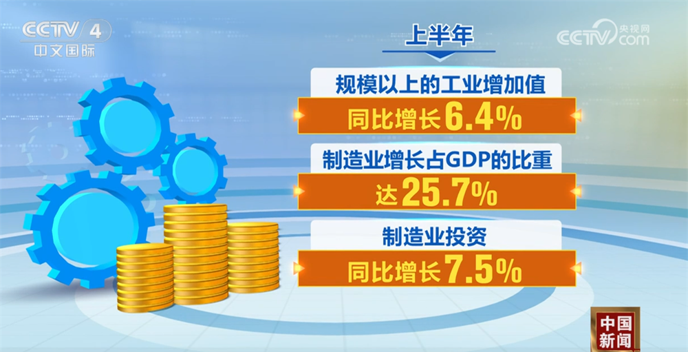 工业和信息化部副部长熊继军介绍,今年上半年,中国工业和信息化经济展现较强的韧性,上半年规模以上的工业增加值同比增长6.4%,制造业增长占GDP的比重达25.7%,制造业投资同比增长7.5%。