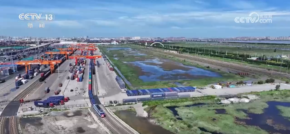 央视网消息:天津充分发挥自贸区、国家级新区、综合保税区“三区叠加”的优势,吸引进出口货物集散。由天津始发的中欧(中亚)班列开行数量和辐射范围持续扩大,为我国同上合组织国家的经贸合作铺就了一条繁忙的“钢铁丝路”。