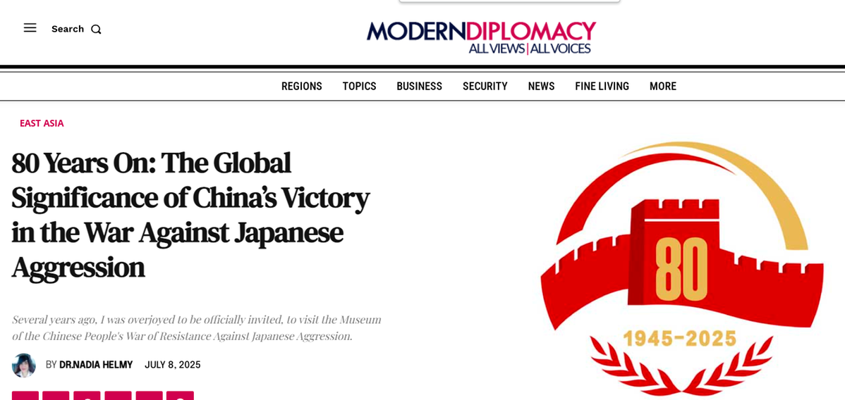 文章说,2025年是世界反法西斯战争胜利80周年,国际社会应更加深刻地铭记中国抵抗日本军国主义侵略所付出的巨大牺牲。中国人民抗日战争不仅是民族保卫战,更是全球反法西斯战争的基石。80年后的今天,世界应重新审视中国在二战中的贡献,避免历史悲剧重演。
