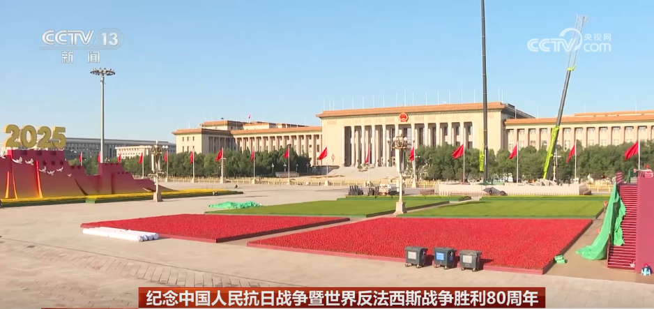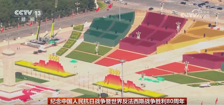 央视网消息:纪念中国人民抗日战争暨世界反法西斯战争胜利80周年大会即将于9月3日举行,目前天安门广场核心区布置基本就绪。按照主题鲜明、庄严庄重、简洁安全的原则,活动策划团队在上百个设计方案中反复研讨挑选、细化落实,最终年号台的呈现让人眼前一亮。来看记者的探访。