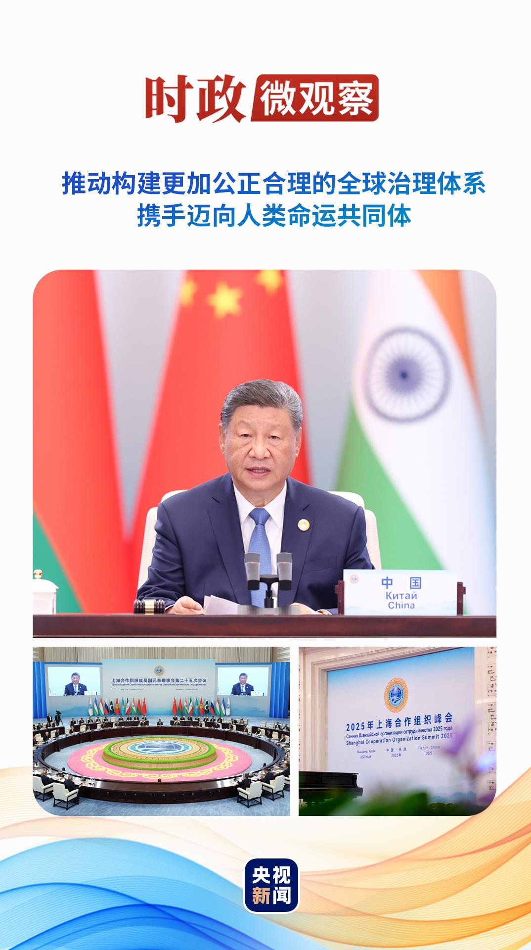 △2025年9月1日,上海合作组织成员国元首理事会第二十五次会议在天津梅江会展中心举行。习近平主席主持会议并发表题为《牢记初心使命 开创美好未来》的重要讲话。