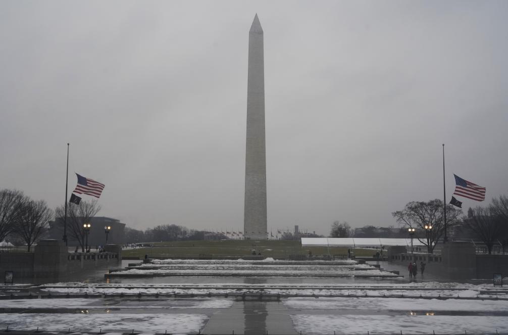 这是1月19日在美国华盛顿拍摄的华盛顿纪念碑。新华社记者吴晓凌摄