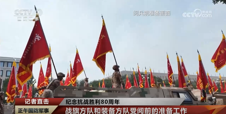记者来到战旗方队与装备方队中间的衔接位置,在她左手边就是战旗方队,这80面战旗是抗战时期具有典型意义的功勋荣誉旗帜。战旗方队中许多官兵都是“90后”,他们告诉记者,每一次训练都让他们对先辈精神有了更具象的了解。
