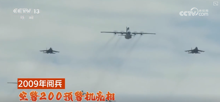 再往后 陆、海、空航空兵一起飞跃天际,加油机、预警机、舰载机等纷纷亮相,蓝色背后是我们的军种扩展和能力提升。