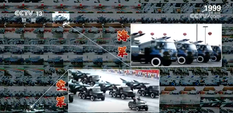 1999年以前,基本是陆军打头阵。例如在1999年,率先登场的就是绿色为主的坦克、装甲车属于陆军。接着蓝、白色增多,对应海军和空军。压轴的是深绿色的第二炮兵方队,现在改名为火箭军,这就是传统的按军种顺序排序。