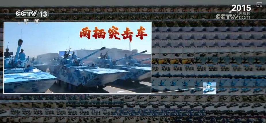 蓝色提前出现,点进去看那是海军的两栖突击车,而旁边略浅一些的是空降兵战车方队带队的空军少将衣服的颜色。