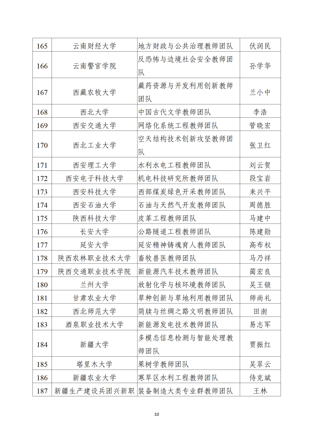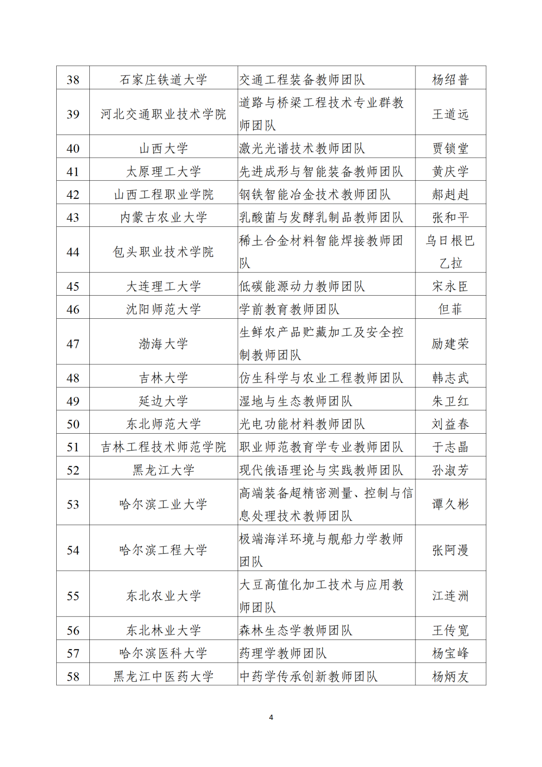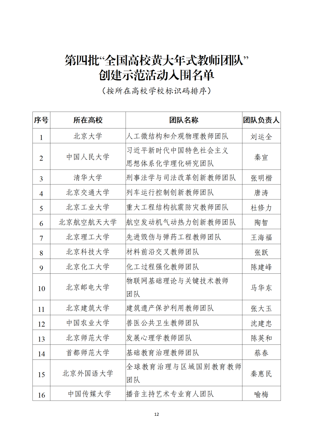 第四批“全国高校黄大年式教师团队”创建示范活动入围名单
