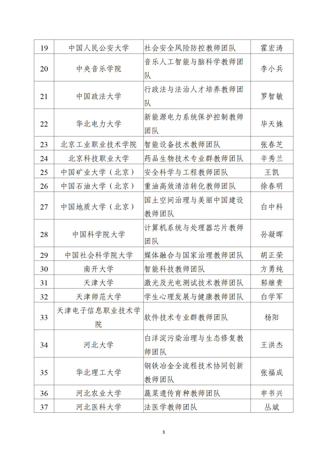 第三批“全国高校黄大年式教师团队”创建示范活动认定名单