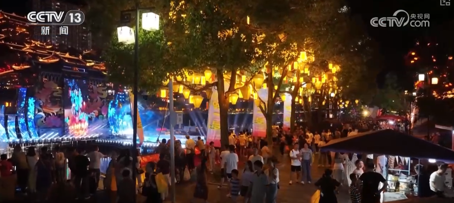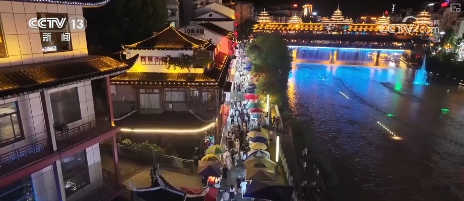 夜幕降临,宣恩贡水河两岸热闹起来。从特色小吃到手工艺品,从传统服饰到文创产品,各色摊位一字铺开。