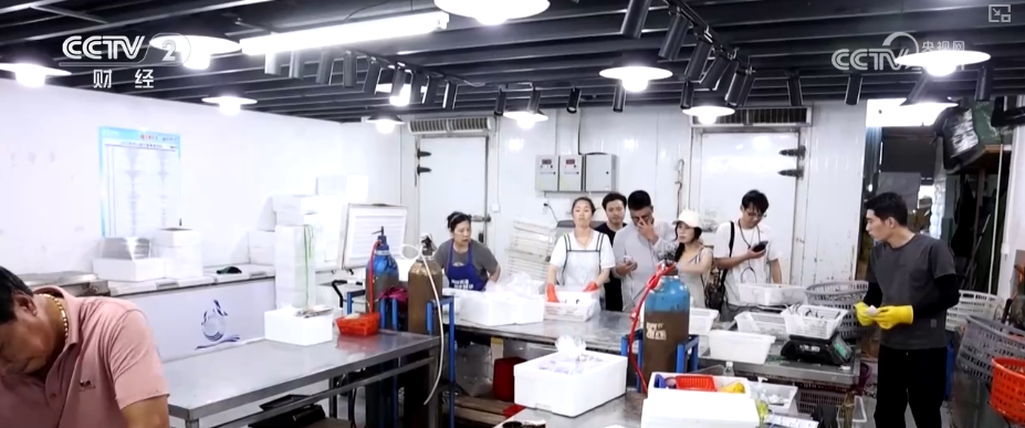 质优价廉的海鲜也吸引了全国各地消费者前来“打卡”。在舟山综合市场,不少外地游客特意前来,购买新鲜捕捞的海产品。