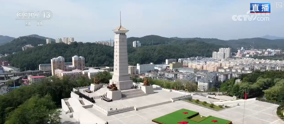 各界代表向抗美援朝纪念塔敬献手中的花,并绕纪念塔致敬。抗美援朝纪念塔高53米,寓意1953年抗美援朝战争取得伟大胜利。4个塔墩上铸有4组大型群雕,分别为抗美援朝战争、抗美援朝运动、志愿军空军和钢铁运输线。绕塔致敬,既是重温、铭记这段历史,也是期待着第十二批在韩中国人民志愿军烈士遗骸归来,向抗美援朝英烈致以最崇高的敬意。