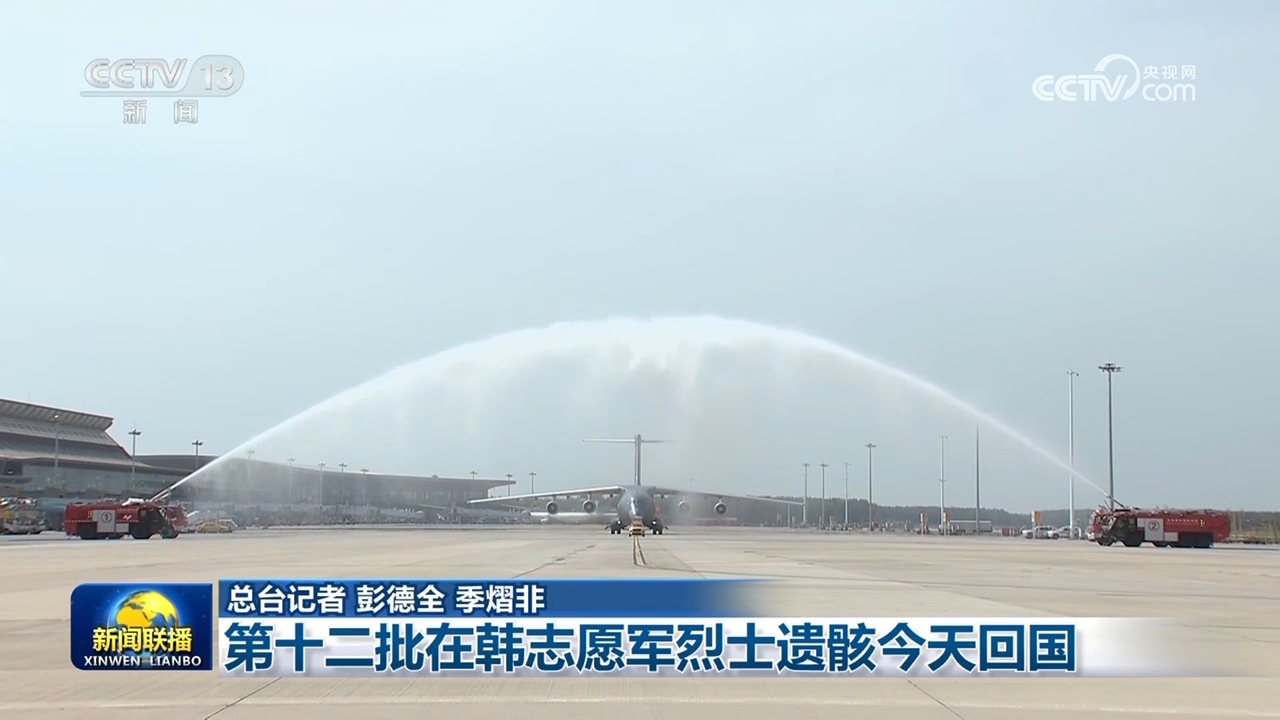 央视网消息(新闻联播):9月12日,第十二批30位在韩志愿军烈士遗骸及相关遗物,由我国空军运-20专机从韩国接回至辽宁沈阳,回到祖国怀抱。