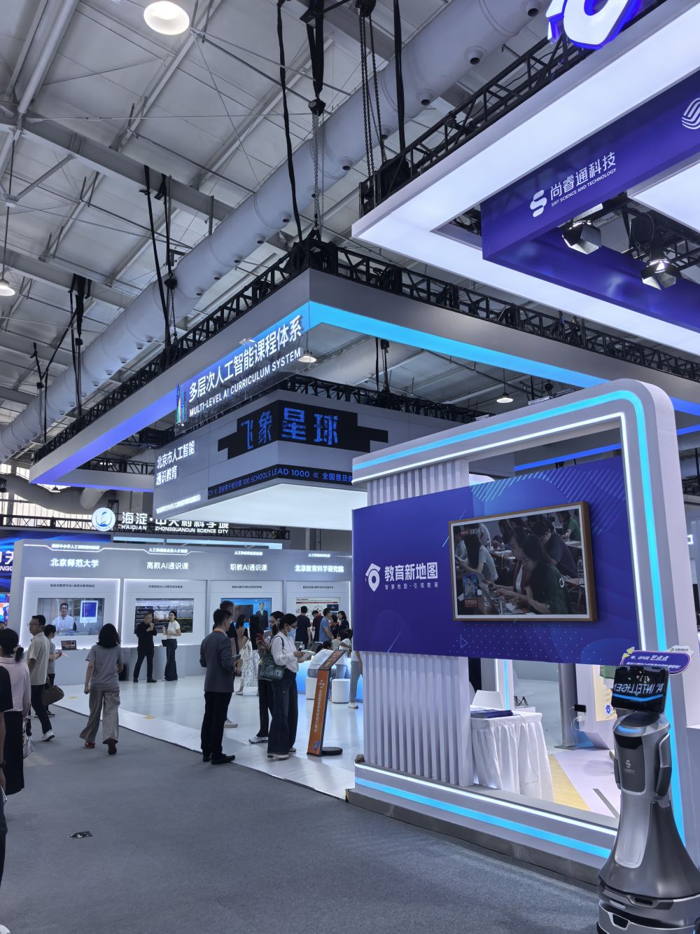 尚睿通科技的课间机器人、北教书院的AI智习室、“智学伴”彩色墨水屏学习机……服贸会上展示多项“AI教育+”最新成果,大大小小的智能终端,让人直呼新奇。