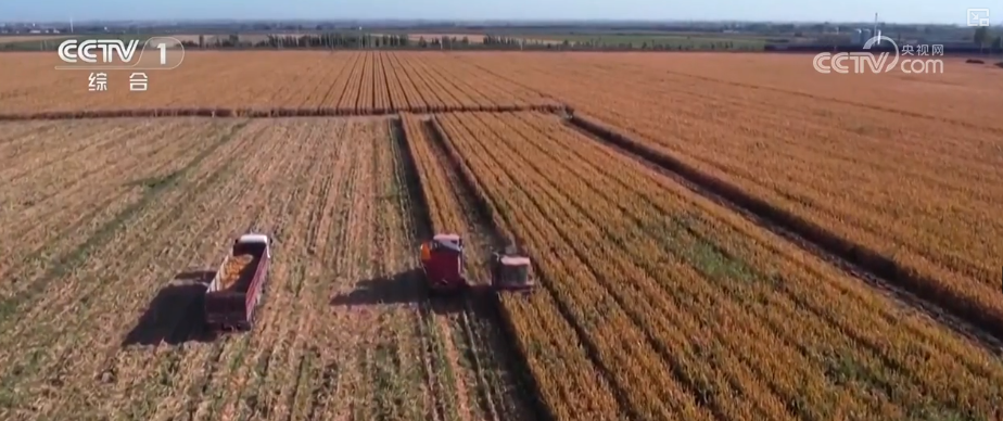 金秋时节,广袤大地片片金黄。新疆昌吉种植的上万亩制种玉米大面积成熟进入收获期。大型收割机在农田里来回穿梭,摘穗、剥皮、装卸一次性完成,大大缩短了采收时间。