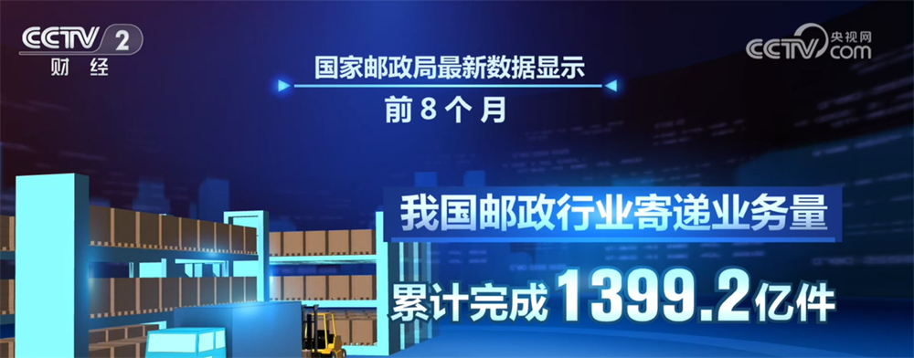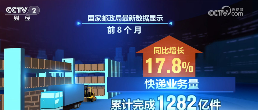 国家邮政局最新数据显示,前8个月,我国邮政行业寄递业务量累计完成1399.2亿件,其中,快递业务量累计完成1282亿件,同比增长17.8%。