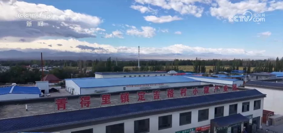 记者现在来到博州的定吉格村,在这个村的村口,一条马路之隔,也就100多米的位置,有一个村里的小微产业园。这个小微产业园占地有30多亩,里面有几十家商户和企业,村民们不用外出打工,走路几分钟就可以在家门口轻松上岗。