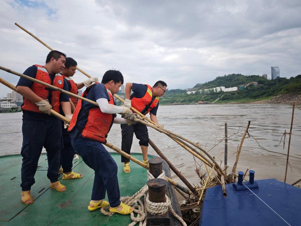 图为长江重庆航道局工作人员正在清理江面漂浮物。(长江重庆航道局供图)