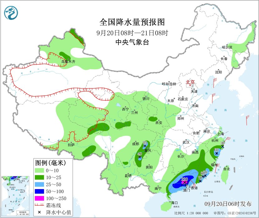 央视网消息:据中央气象台消息,今年第17号台风“米娜”的中心已于昨天(19日)下午2点50分前后在广东省汕尾市沿海登陆,并于昨天晚上进一步减弱为热带低压,今晨,对其停止编号。受“米娜”影响,昨日,广东中东部、福建中部和东南部等地出现暴雨到大暴雨,广东揭阳、汕尾、梅州和潮州局地特大暴雨(250~330毫米)。预计今天,“米娜”的残留云系还将继续影响华南,广东大部、广西东部、福建东南部等地的部分地区有大到暴雨,其中,广东中部的部分地区有大暴雨(100~220毫米)。