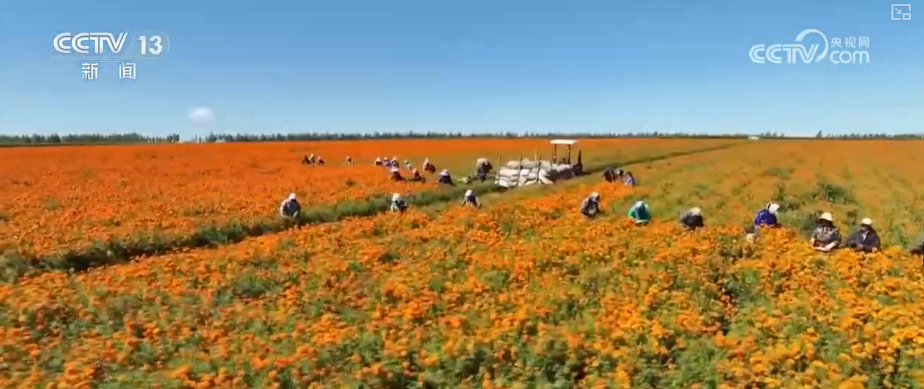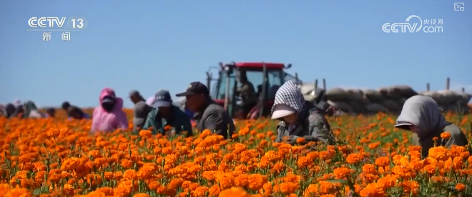 当前,正值采花旺季,平均7天就要采摘一次,这也吸引了大量周边村民就近务工。近年来,当地以万寿菊产业为抓手,引导农民规模化种植与科学化管理的紧密结合。由农业技术人员全程指导种植管护,通过企业订单等方式,带动经济效益与社会效益双赢。