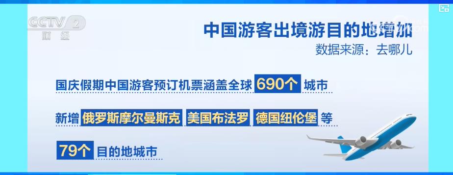 平台数据显示,国庆假期,中国游客预订机票涵盖了全球690个城市,新增俄罗斯摩尔曼斯克、美国布法罗、德国纽伦堡等79个目的地城市。