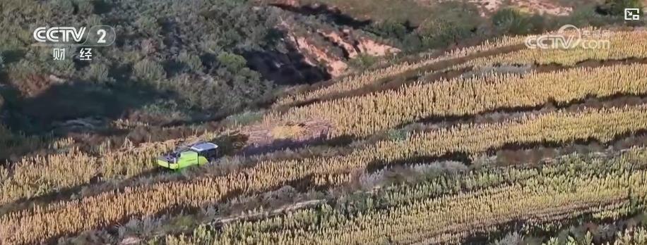 这几天,当地的农户也陆续开始了紧张忙碌的收割作业。我们可以看到在我身旁,联合收割机正在田间地头紧锣密鼓地开展抢收藜麦。当地的种植大户告诉我说,种植藜麦相对种植传统的小杂粮而言,光从原粮的价格上来说,它的经济收益就能增加百分之五十以上。如果再进行精深加工和包装,做成的藜麦米,最高一斤能够卖到七八十块钱。