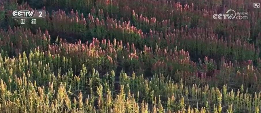 总台记者 宋文植:我现在是在山西省静乐县常窑沟村的一片藜麦地里。眼下当地的藜麦陆续进入了成熟期。我们可以看到,不同品种的藜麦呈现出火红、金黄等不同的颜色,把黄土高原点缀得色彩斑斓。