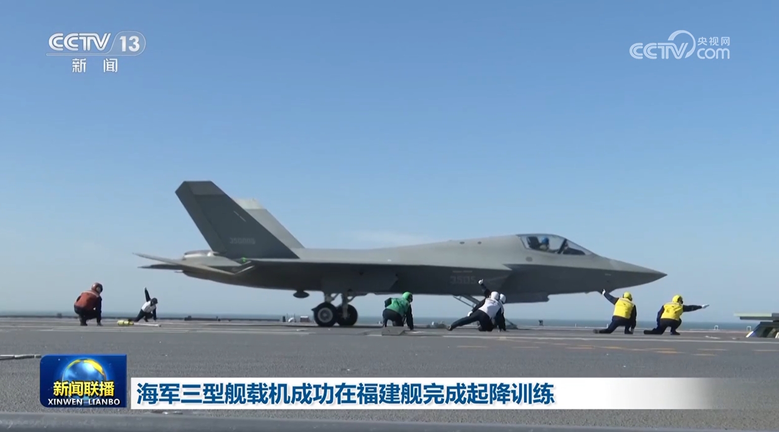 央视网消息(新闻联播):日前,记者从海军有关部门获悉,在纪念中国人民抗日战争暨世界反法西斯战争胜利80周年大会上受阅的歼-15T、歼-35和空警-600三型舰载机,已于此前完成在福建舰上首次弹射起飞和着舰训练,标志着福建舰具备了电磁弹射和回收能力。