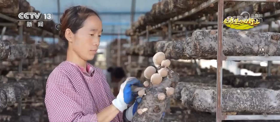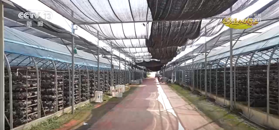 在山西运城市万荣县的这个香菇基地,标准大棚整齐排列。棚内的菌棒上一朵朵饱满的香菇长势喜人,工人们正熟练地进行采摘。