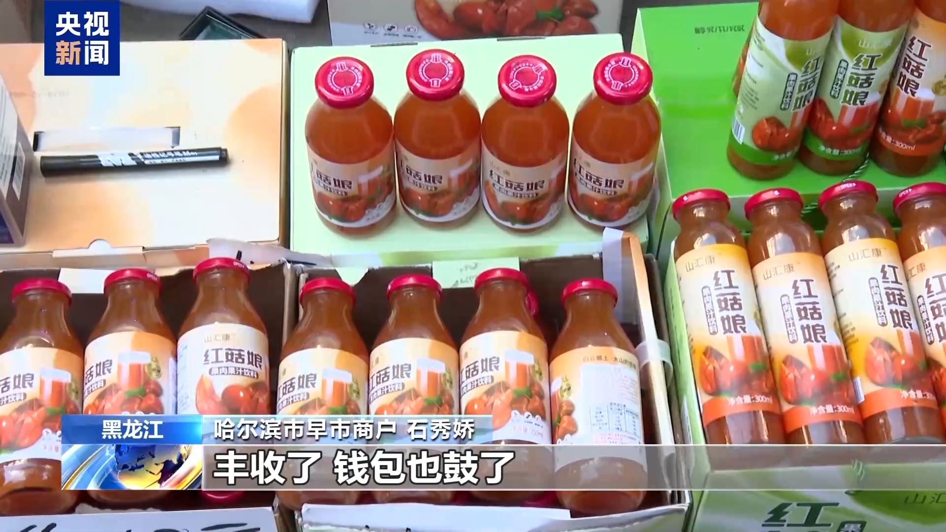 早市热闹的背后是农产品从田间到餐桌的高效流通。商户石秀娇一大早从依兰县赶来,带着自家种的红菇娘果到早市售卖。绿色健康、富有东北特色的果品,深受市民和游客喜爱。