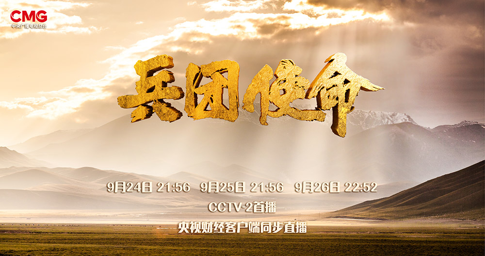 纪录片《兵团使命》共三集,分别是《安边固疆》《情满天山》《繁荣发展》,将于9月24日、25日21:56,26日22:52在央视财经频道首播,央视财经客户端同步直播。